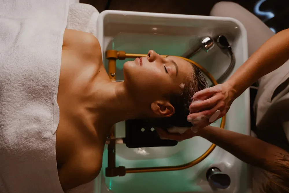 A Head Spa focuses on scalp health + relaxation through:
